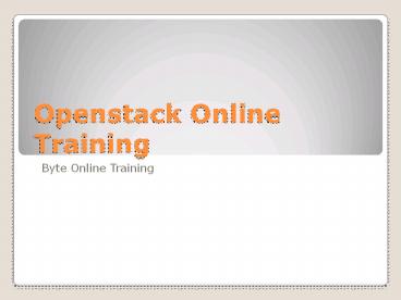 Instructor Led Openstack Online Training | Bytes Online Training PowerPoint PPT Presentation