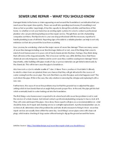 Title: SEWER LINE REPAIR – WHAT YOU SHOULD KNOW
