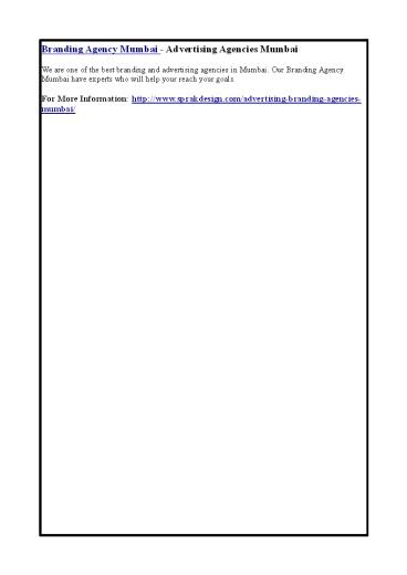 Branding Agency Mumbai - Advertising Agencies Mumbai PowerPoint PPT Presentation