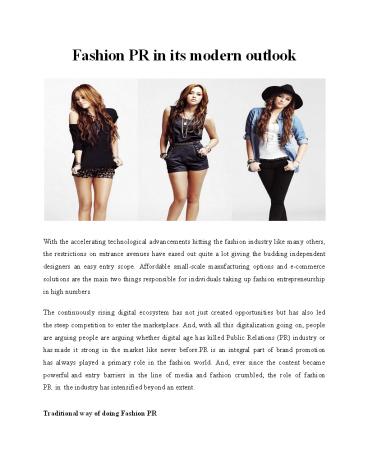 Title: Fashion PR in its modern outlook