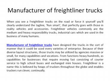 Manufacturer of freightliner trucks PowerPoint PPT Presentation