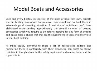 Model Boats and Accessories PowerPoint PPT Presentation
