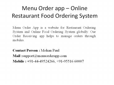 Menu Order App - Restaurant Online Ordering System PowerPoint PPT Presentation