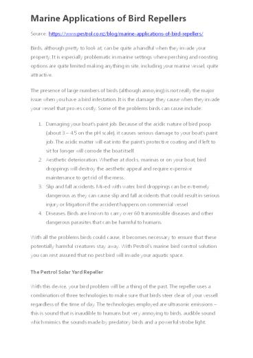 Marine Applications of Bird Repellers PowerPoint PPT Presentation