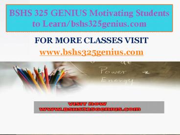 Title: BSHS 325 GENIUS Motivating Students to Learn/bshs325genius.com