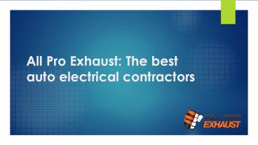 All Pro Exhaust: The best auto electrical contractors PowerPoint PPT Presentation