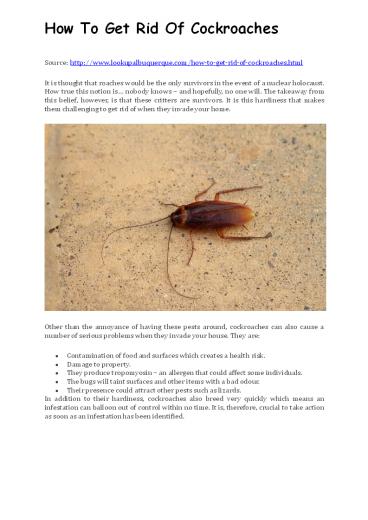How To Get Rid Of Cockroaches PowerPoint PPT Presentation