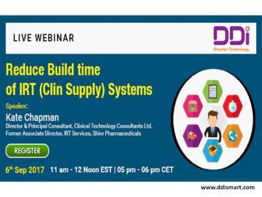 Title: Webinar on Reduce Build Time of IRT Systems.