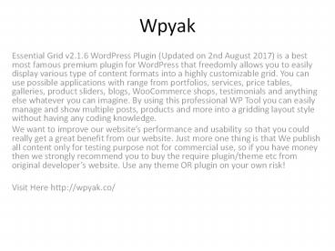 • Visit here for more details http//wpyak.co/catego