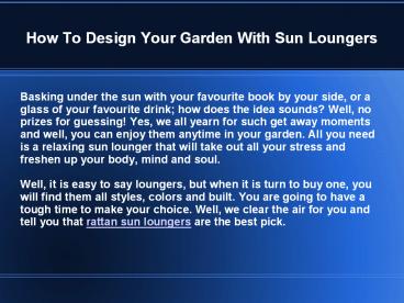 How to design your garden with sun loungers PowerPoint PPT Presentation