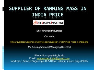 ramming-mass-in-india.php - Mr. Anurag Somani (Managing Director)