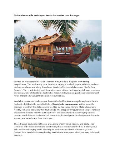 Title: Holiday on Kerala backwater tour Package