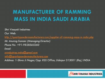 Title: Manufacturer of Ramming mass in India Saudi Arabia