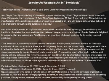 Title: Jewelry As Wearable Art In "Symbiosis"