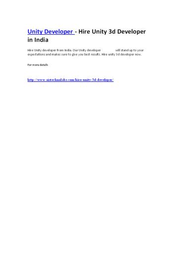 Unity Developer - Hire Unity 3d Developer in India PowerPoint PPT Presentation