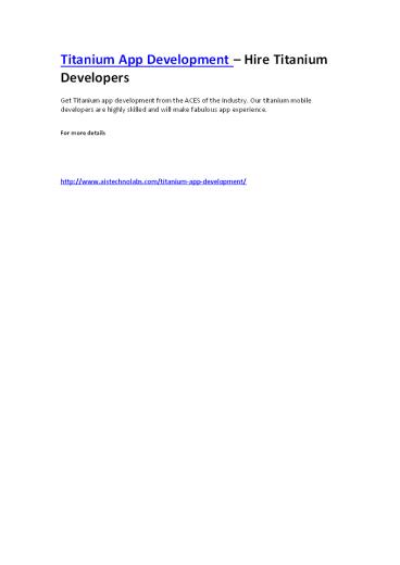 Titanium App Development – Hire Titanium Developer PowerPoint PPT Presentation