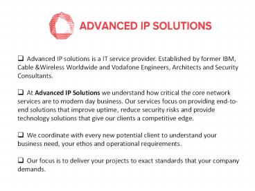 Advanced Network Security Consultant in London – AIP Solutions PowerPoint PPT Presentation