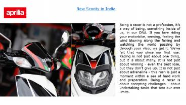 Website http//www.apriliasr150.in/ Goog