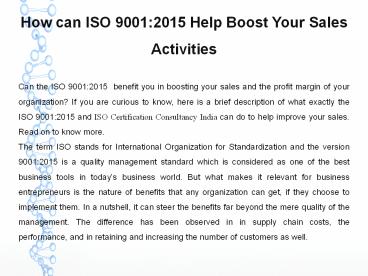 Title: How can ISO 9001:2015 Help Boost Your Sales Activities