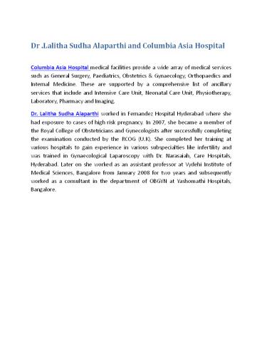Dr .Lalitha Sudha Alaparthi and Columbia Asia Hospital PowerPoint PPT Presentation