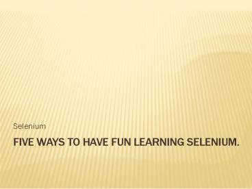 Five Ways To Have Fun Learning Selenium.