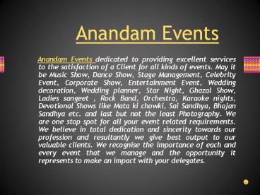 • Anandam Events dedicated to providing