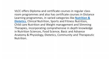 This course equips an individual to understand the concepts of Nutrition, Dietetics | Become a renowned Dietitian/Nutritionist & excel your career – PowerPoint PPT presentation