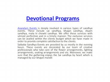 Title: devotional programes