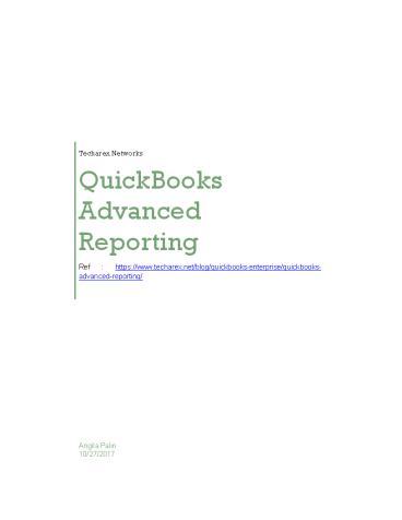 Ref https//www.techarex.net/blog/quickbooks-enterprise/quickbooks- advanced-reporting/