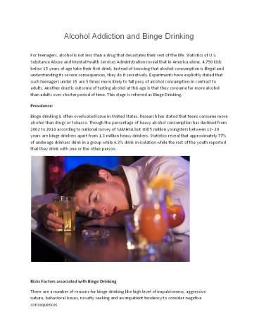 prevalence and risks of teenage drinking. - Developing awareness, knowledge and confidence in