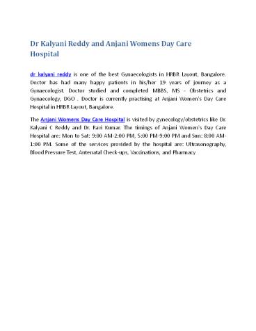 Dr Kalyani Reddy and Anjani Womens Day Care Hospital PowerPoint PPT Presentation