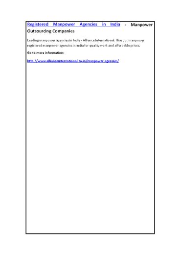 Registered Manpower Agencies in India - Manpower Outsourcing Companies PowerPoint PPT Presentation