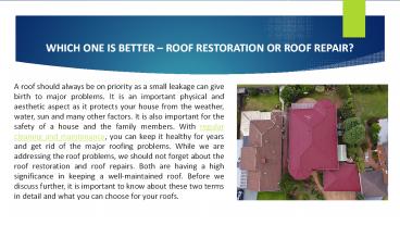 WHICH ONE IS BETTER – ROOF RESTORATION OR ROOF REPAIR? PowerPoint PPT Presentation