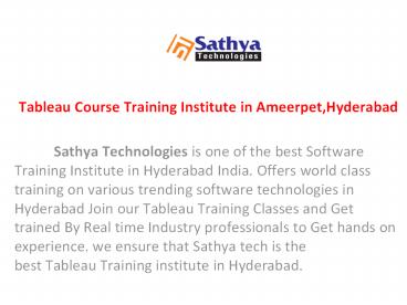 Tableau training institute in Ameerpet Hyderabad PowerPoint PPT Presentation
