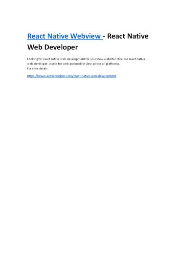 React Native Webview - React Native Web Developer PowerPoint PPT Presentation