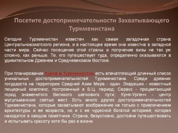 Посетите достопримечательности Захватывающего Туркменистана PowerPoint PPT Presentation