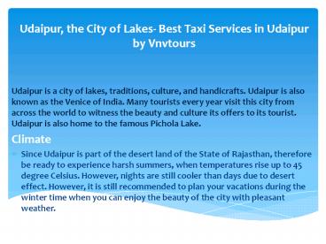 Udaipur, the City of Lakes- Best Taxi Services in Udaipur by Vnvtours PowerPoint PPT Presentation
