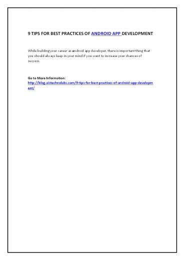 9 TIPS FOR BEST PRACTICES OF ANDROID APP DEVELOPMENT PowerPoint PPT Presentation