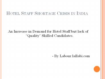 A Crisis in the Supply of Hotel Staffs PowerPoint PPT Presentation