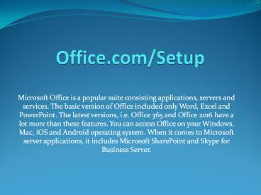 Office.com/Setup – Office Setup Download, Install and Activation PowerPoint PPT Presentation