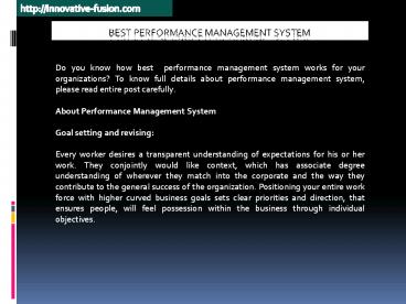 Know How Best Performance Management System Works? PowerPoint PPT Presentation
