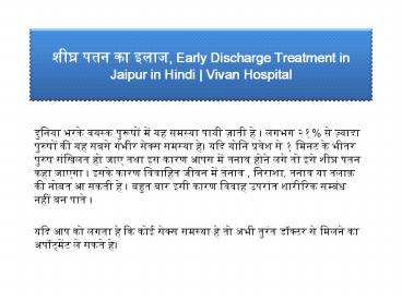 शीघ्र पतन का इलाज, Early Discharge Treatment in Jaipur in Hindi | Vivan Hospital PowerPoint PPT Presentation