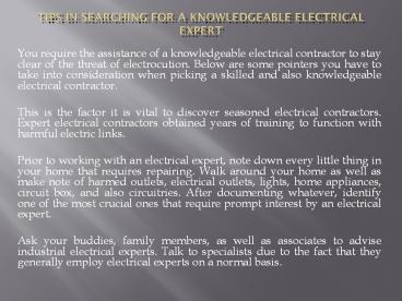 Tips in Searching For a Knowledgeable Electrical Expert PowerPoint PPT Presentation