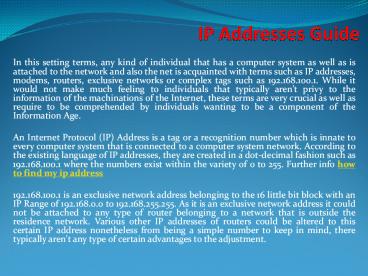 IP Addresses Guide PowerPoint PPT Presentation
