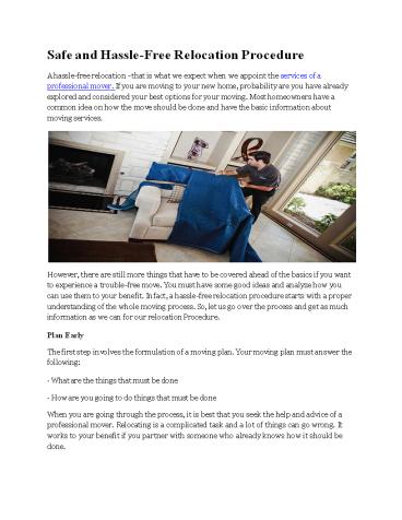 Safe and Hassle-Free Relocation Procedure PowerPoint PPT Presentation
