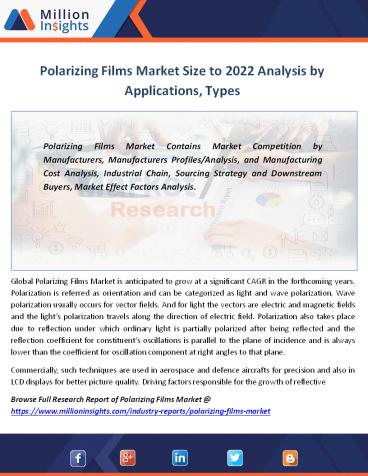 Title: Polarizing Films Industry Share, Growth,Margin, Outlook to 2022