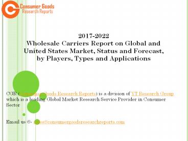 Title: 2017-2022 Wholesale Carriers Report on Global and United States Market, Status and Forecast, by Players, Types and Applications
