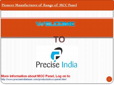 1Pioneer Manufacturer of Range of MCC Panel