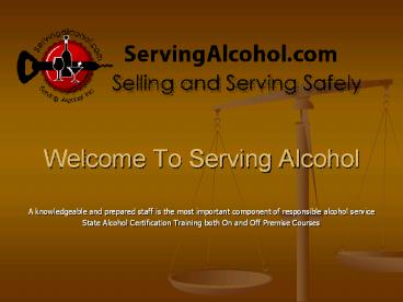 Responsible alcohol service certification courses for alcohol sellers/servers for bartender license & food handling. Quick, Easy, Mobile Friendly. – PowerPoint PPT presentation