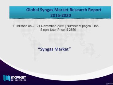 Title: Global Syngas Market 2016- 2020; Market Trend, Future Analysis, Business and Profit Opportunities.